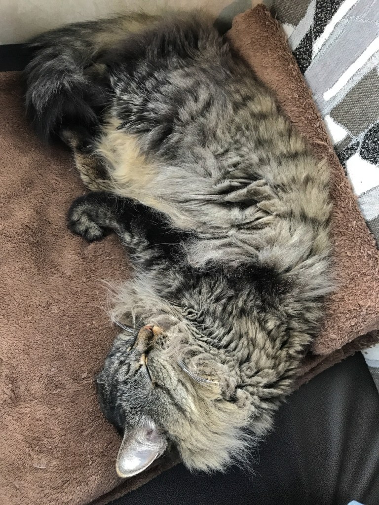 At 16 years of age, Misty was in the upper end of the feline lifespan. She had always been in good health, never having had any serious illnesses. About 18 months ago she started having some health issues. We went to a couple vets and couldn’t determine the cause. Finally this past winter she was diagnosed with hypo-active thyroid. She started a daily medication to treat it and seemed to be doing well. Her blood tests were excellent and heart seemed fine over the last few months.
